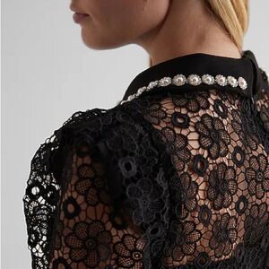 Express Daisy Eyelet Lace Rhinestone Color Embellishment Puff Sleeve Polo Romper