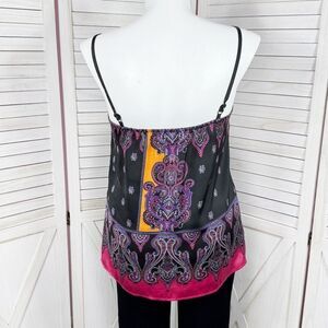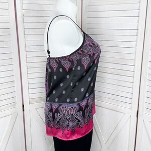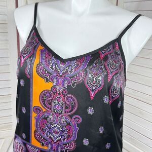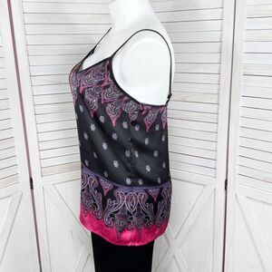 Express Damask Paisley Satin Camisole Tank Top Black Pink Multi