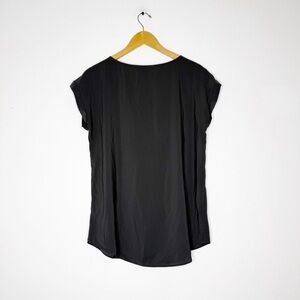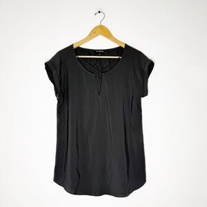 Chic and versatile top from Express. Features a keyhole neckline detail with a flattering drape, short cap sleeves, and a smooth lightweight fabric. Perfect for work, casual wear, or layering under jackets and cardigans.