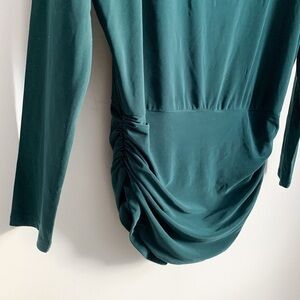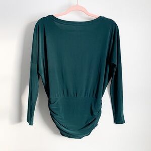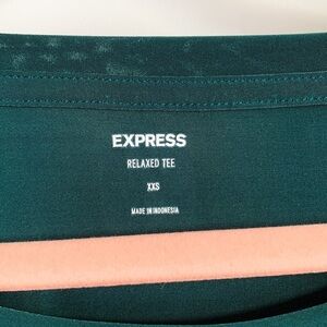 Express Dark Green Ruched Side Relaxed 3/4 Sleeve Tee XXS. Slinky smooth material. Ruched at the sides on the bottom panel. Very stretchy. Excellent condition! Worn once!