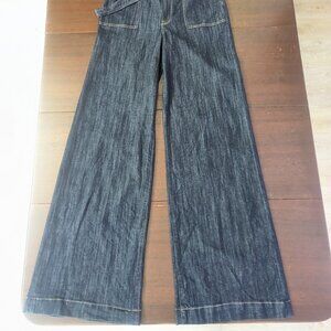 Express Dark Wash Denim Wide Leg Super High Rise Stretch Jean Size 6 Long