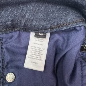 These Express dark wash jeans in size 14 offer timeless style and dependable comfort. Crafted from a blend of cotton, polyester, and spandex, they deliver a soft yet structured fit that moves with you. Featuring a flattering mid-rise waist and straight-leg silhouette, these jeans are perfect for work, weekend errands, or a casual night out. With classic five-pocket styling and clean dark denim finish, they-re a staple piece for any wardrobe.