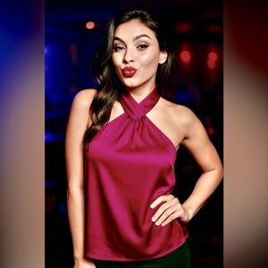 Express Dark fuchsia, Halter Neck Satin Top XS Sleeveless Blouse