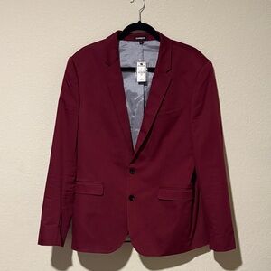 Elegant deep red/maroon blazer from Express. With matching Slim Slacks. Ideal for business or evening wear.