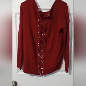 Elegant deep red knit sweater by Express. Perfect for cozy style. Features a Lace Up back.