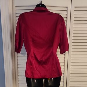 Elegant blouse with ruffled front. Button-up style. Perfect for a polished look.