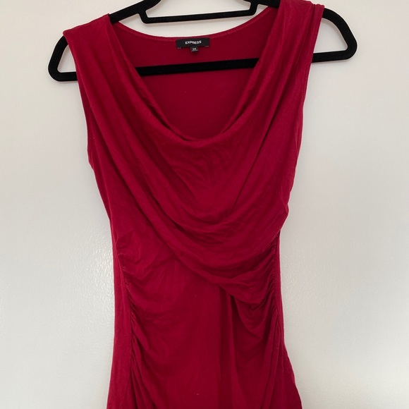Express deep Red Cowlneck with draping evening top. Great for the holidays! Stretchy