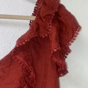 Chic bohemian crop top with ruffled sleeves. Deep rust color