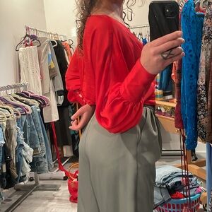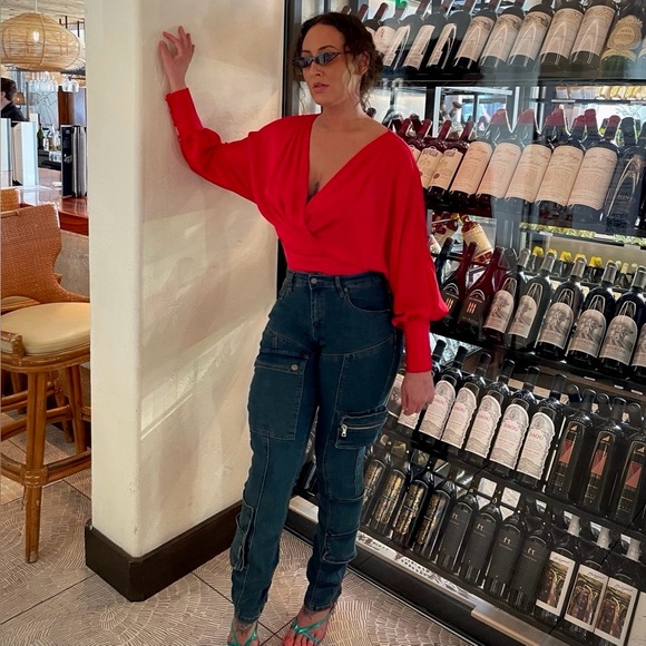 Express Deep V Red Top