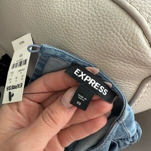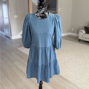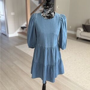 Elegant denim dress with puff sleeves. Ideal for versatile styling.