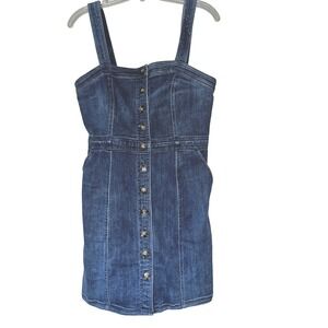 Capture hearts with this adorable denim mini dress from Express, featuring a classic button-front design that elevates your casual wardrobe! Boasting a flattering silhouette and a rich, dark wash, this dress exudes timeless charm with a touch of modern flair. The strategically placed seams and structured bodice cinch in all the right places, creating a defined waistline and a confident, feminine shape. Complete with practical pockets and adjustable straps, this denim dress combines fashion and function seamlessly. Perfect for a sunny picnic, a casual date night, or exploring a weekend market, this Express denim dress will quickly become a wardrobe staple that you reach for time and again.