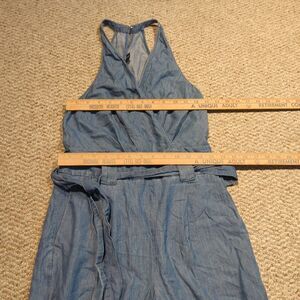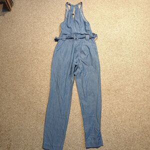 Express Denim Chambray Jumpsuit Womens 0 Wrap Sleeveless Halter Belted