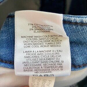 Express Denim Jean Mini Skirt High Rise Stretch . Classic 5 pocket design, 5 buttons on front.