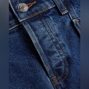 New with tags Express denim midi jean shorts featuring a mid-rise waist, dark wash, patch hand pockets, back welt pockets, and a concealed button fly.