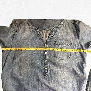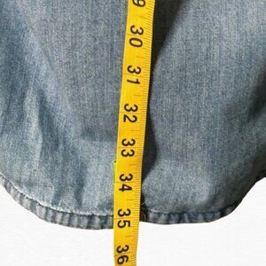 Express denim/rayon shirt dress.