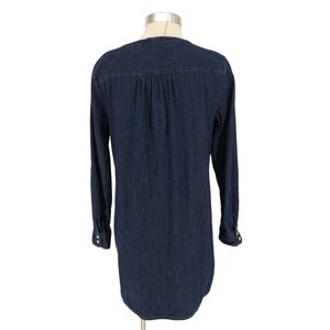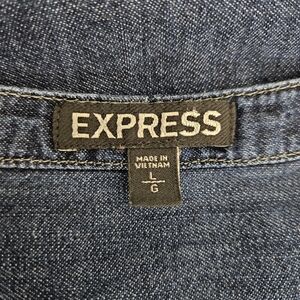 Express Denim Shift Shirt Dress Dark Wash Long Sleeve Button V Neck Large