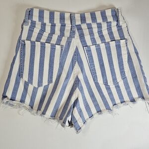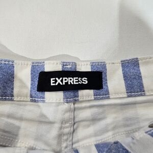 Express Denim Shorts Size 2 Blue White Stripe Shortie Super High Rise Mom Shorts