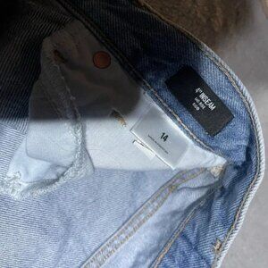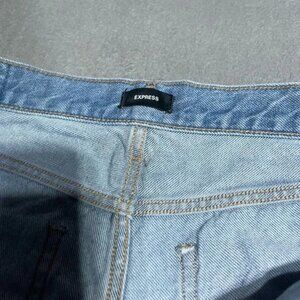Express Denim Shorts Womens 14 Mid Rise Rigid Jean Shorts 4" Inseam Raw Hem
