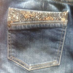 Express denim skirt with gold studs and gray and silver rhinestones accents on back pockets and front right inner pocket(see 3rd pic above). Great condition, worn once. No rips, tears or stains. Zipper works great!