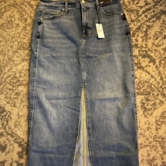 New with tags. Size 8. Front slit. Raw hem. Maxi denim skirt.
