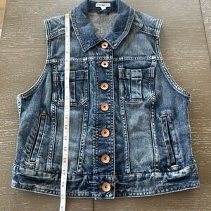 Express Denim Medium Wash Vest with Copper Buttons Cotton Blend Women’s Size M