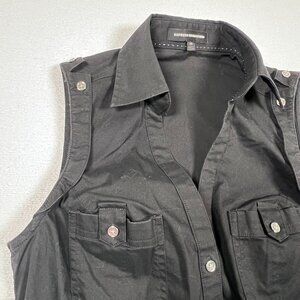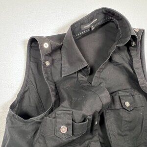 Express Design Studio Black XS Button Up Tank Top Collar Silver Buttons