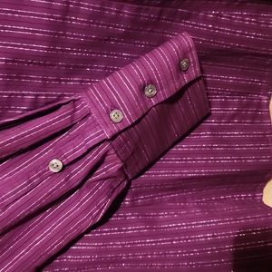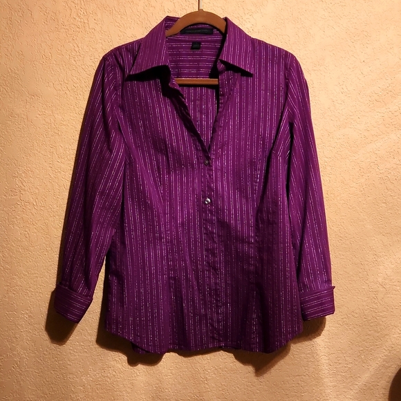 Like new blouse, very pretty purple with silver strips. Smoke free home.