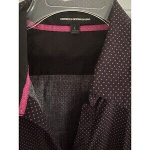 Express Design Studio Blouse Women's Size Large Button Up Polka Dot
