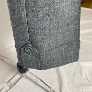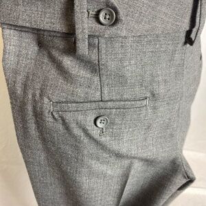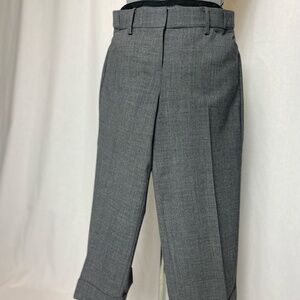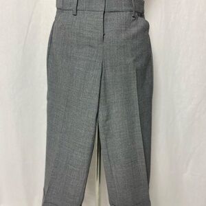 Dark gray capri from Express Design Studio. Size 0, 63% polyester, 33% rayon, 4% spandex. Button accents at cropped cuffs, belt loops, rear pockets zipper and dresser clasp closure. Perfect for office.