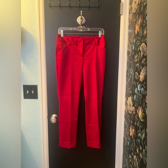 Editor High Waisted Twill Straight Ankle Pant. Red. Size 2R.