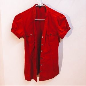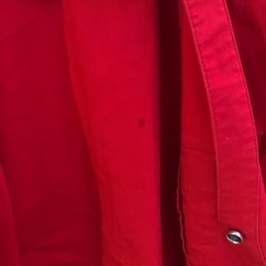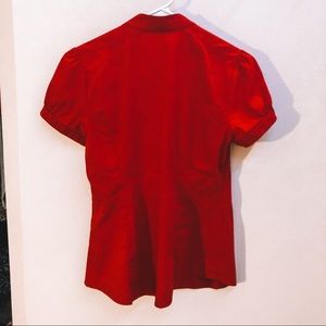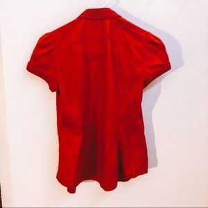 Red work shirts size S & XS, respectively. Cotton, polyester and spandex.