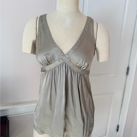 Elegant gray garment from Express Design Studio. Soft and stylish. Silky top with side zipper. Light discoloration under arms-shown in photo