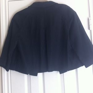 Cropped one button jacket with three quarter length sleeves and two front pockets. Cute with slacks, a skirt or jeans!