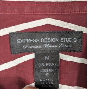 Express Design Studio, size M (15–15.5), premium woven 100% cotton, maroon/white stripe