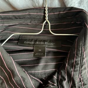 Express Design Studio Men's Black/ Pink Striped Dress Shirt Medium NWOT Collared