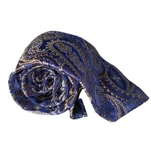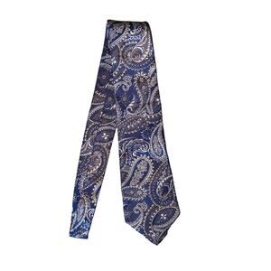 Express Design Studio Paisley Print Blue and Brown 100% Italian Silk Tie