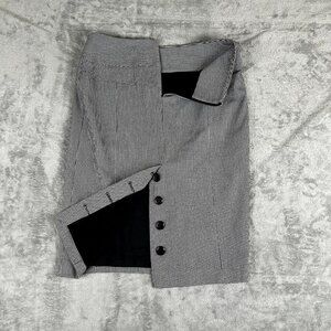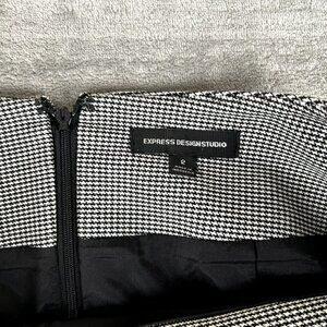 Express Design Studio Pencil Skirt Size 2 Button Back Black White Houndstooth