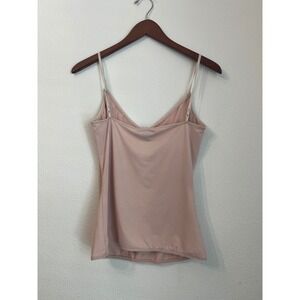 Keywords: cami top, tank top, sleeveless top, lace trim, pink cami, blouse, express design studio, adjustable straps, casual top, dressy top, women's top, medium, M, blush pink, spaghetti strap