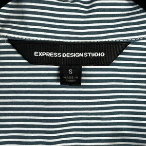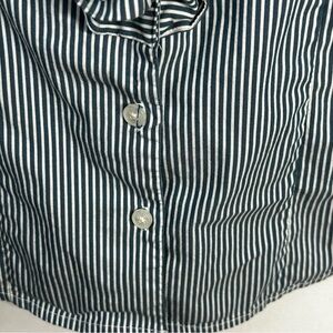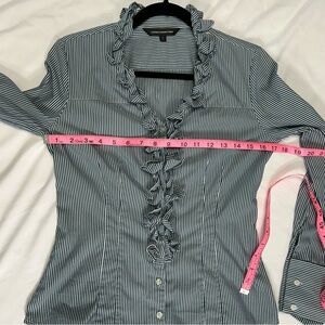 Express Design Studio Pinstripe Ruffle Collar Button Career Peasant Blouse Sz S