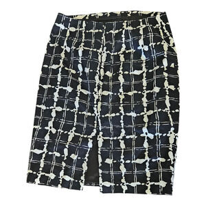 Size 8 Black and White Skirt is used and does have a small light stain on the front as pictured above but otherwise is in good condition. Brand is Express Design Studio.