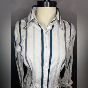 Express Design Studio Striped Button-Down Shirt - Size 10 (Classic Fit)