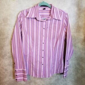 Express Design Studio Womens Sz 10 Purple White Striped Long Sleeve Button Down Blouse Shirt