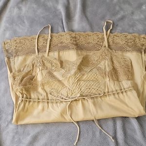 Great condition. Lightly used. X-Small. Tank tip with lace trimming. Tan color.