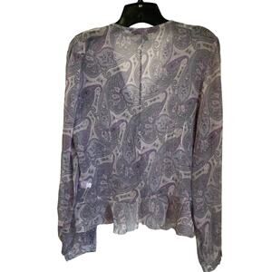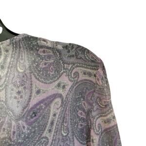 Express Design Studio Y2K Purple Paisley 100% Silk Button Up Blouse Size M
