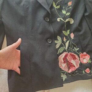 Express Design Studio womens Black Blazer Sz 6 small embroidered 2 buttons fair