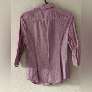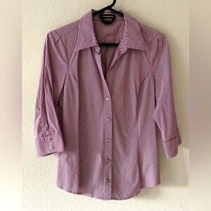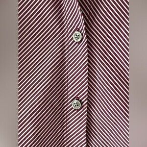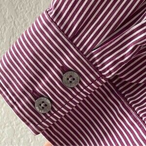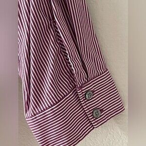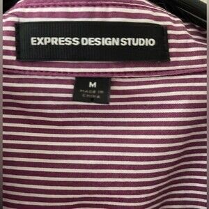 Great Preowned Condition. Express Design Studios Maroon 3/4 Sleeve Button Down Dress Shirt Size M Fitted Marron and White Striped. Smoke free home.
