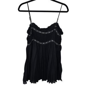 Express Design Studio Spaghetti strap Top Women's M Black Silk Plisse Babydoll Empire Waist Beaded Metallic Banded Waist and adjustable straps