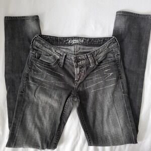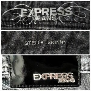 Express Distressed Skinny Jeans Black Size 2. Sandblasted with bleached whiskers and abrasions on both knees, skinny fit. 5 pockets and 5 belt loops