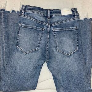 Women’s size 4 - distressed denim. Last pictures show the fit/length. The actual jeans for this listing do have more distressing (shown in pics). In great condition.