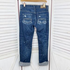 Express Distressed Bleach Splatter Straight Leg Boyfriend Jeans Blue